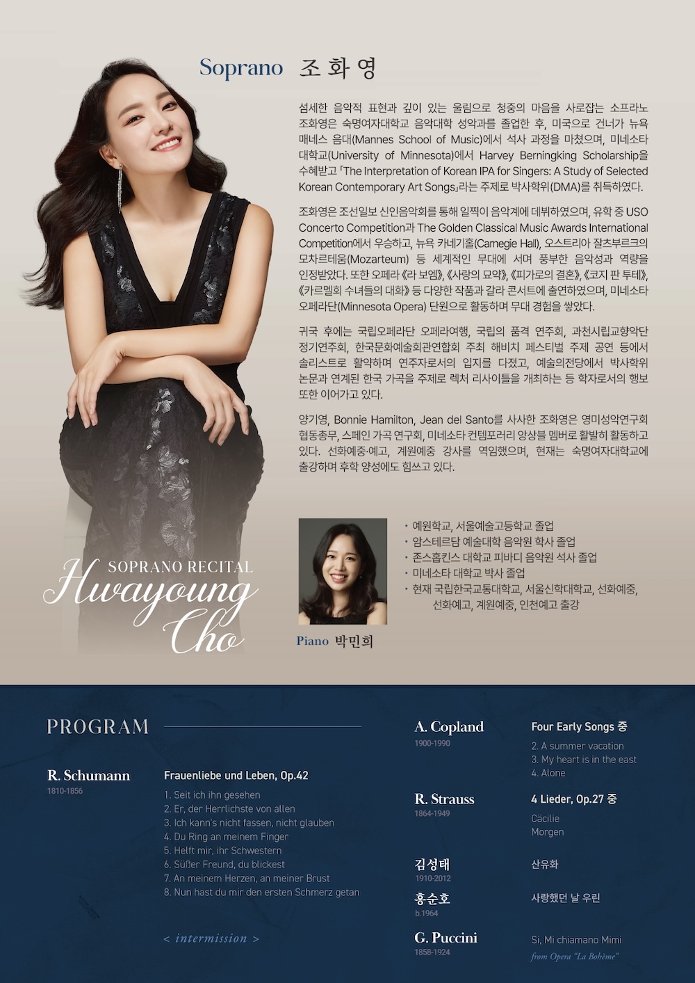 공 연 명 : 소프라노 조화영 독창회 Soprano Hwayoung Cho Recital