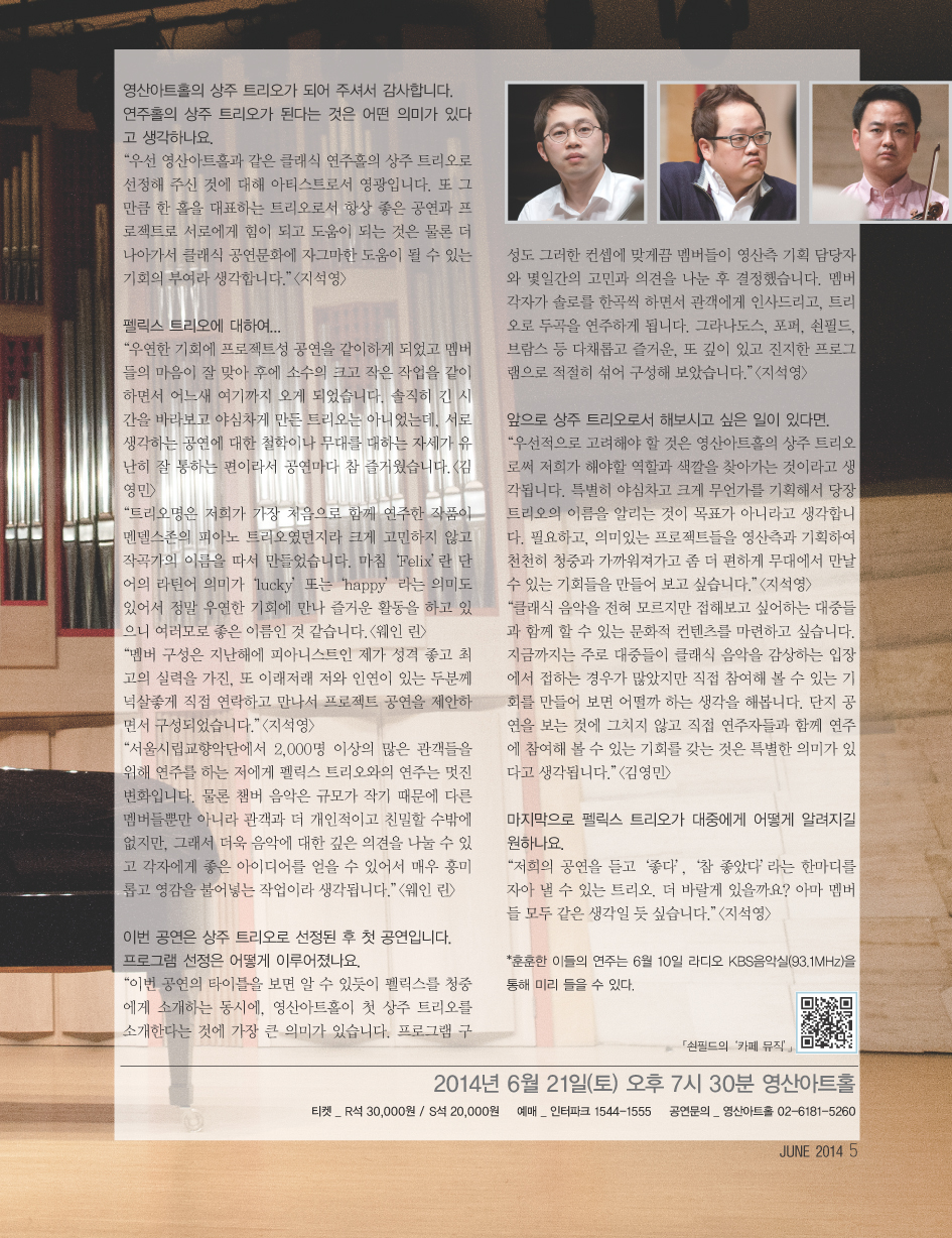 <클래식영산6월>커버스토리, 펠릭스 트리오