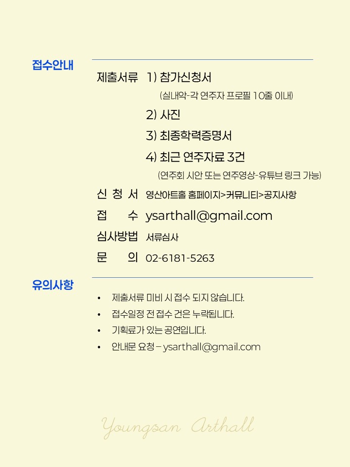 [마감] 2026 영산아트홀 전문연주자•실내악시리즈 연주자 모집