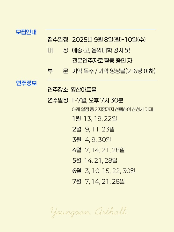 [마감] 2025 제5회 영산아트홀 Youth Concert 연주자 모집