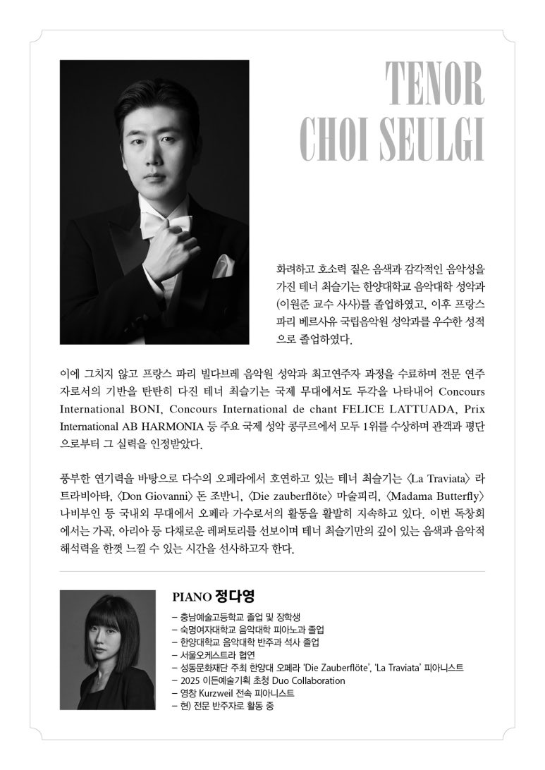 테너 최슬기 귀국 독창회 * 연주자의 사정으로 공연이 취소되었습니다 *